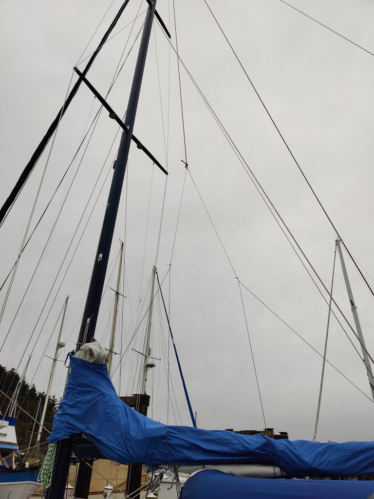 Another small but necessary project was the addition of a proper main sail and a rig tune! Last year we were cruising with a Baba 30 mainsail, which is about the same size as a 4th reef in a properly sized main. Karma has a pretty high aspect rig, with a 45 foot luff and a foot of just 10.5 feet. Being on the budget that we are we were looking out for a sail loft that had nice condition used sail which some actively racing sailboat replaced. After a while of looking we eventually found one from baconsails.com which was reasonably priced and well packed and shipped! Its 8oz dacron, so quite heavy and sturdy, with 2 reefs the second being pretty deep. We also have all new reefing lines and vang and preventer lines. This works for us as the sail is already quite tall and skinny so the second reef is tiny tiny. Less lines around makes it simple and the first reef is probably good up to some huge conditions at which point the main will most likely go away anyway. Speaking of going away, we also made lazyjacks! And wow are these amazing. Easy to make, lots of patterns to choose from, and holy cow do they make such a massive difference you should do this to your yacht now even if its a 10 foot El Toro Dinghy.