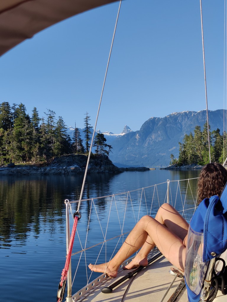 Deciding it was time to enter Desolation Sound proper we set off and even had a light wind to sail us around Sarah Point. This is the corner boats turn to then get that oh so famous Desolation Sound view. Due to actually having wind to sail, we continued past our originally planned anchorage and headed for the classic Predieux Haven. This is the anchorage in the Sound. Good holding in moderate depth, the entrance is a little hidden but you snake your way into a pretty large bay where tons of yachts could, and apparently later in the summer months do, squeeze into. We were there with but 5 other boats all spread throughout the bay. This place definitely lives up to its reputation as being quite the spot. Aside from the crowds that we didn’t experience, I’m not sure what else one could really look for in an anchorage. We swam off the side and watched a lovely sunset from the paddleboard as we explored the different islands and coves.