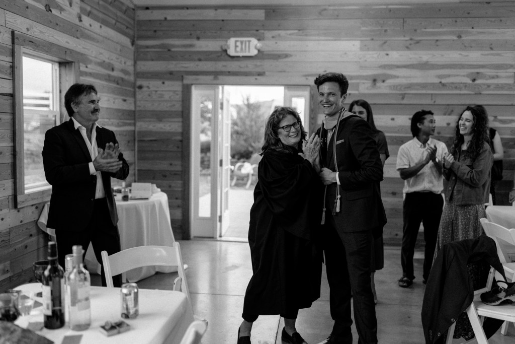 The friend cabin hang out pre-wedding, birthday cakes, the games, the rehearsal dinner, the wedding, the dancing, it was all QUITE enjoyable. Well worth the long trek. And we got to celebrate my new older brother Ben’s successful PhD defense too! He was supposed to walk that day turns out, but chose to do wedding instead. Liam’s brother played Pomp and Circumstance as Ben’s Aunt dressed him in a robe and cap. Had a great night with lots of dancin’ thanks to our debuting DJ, Liam’s brother Tristan.