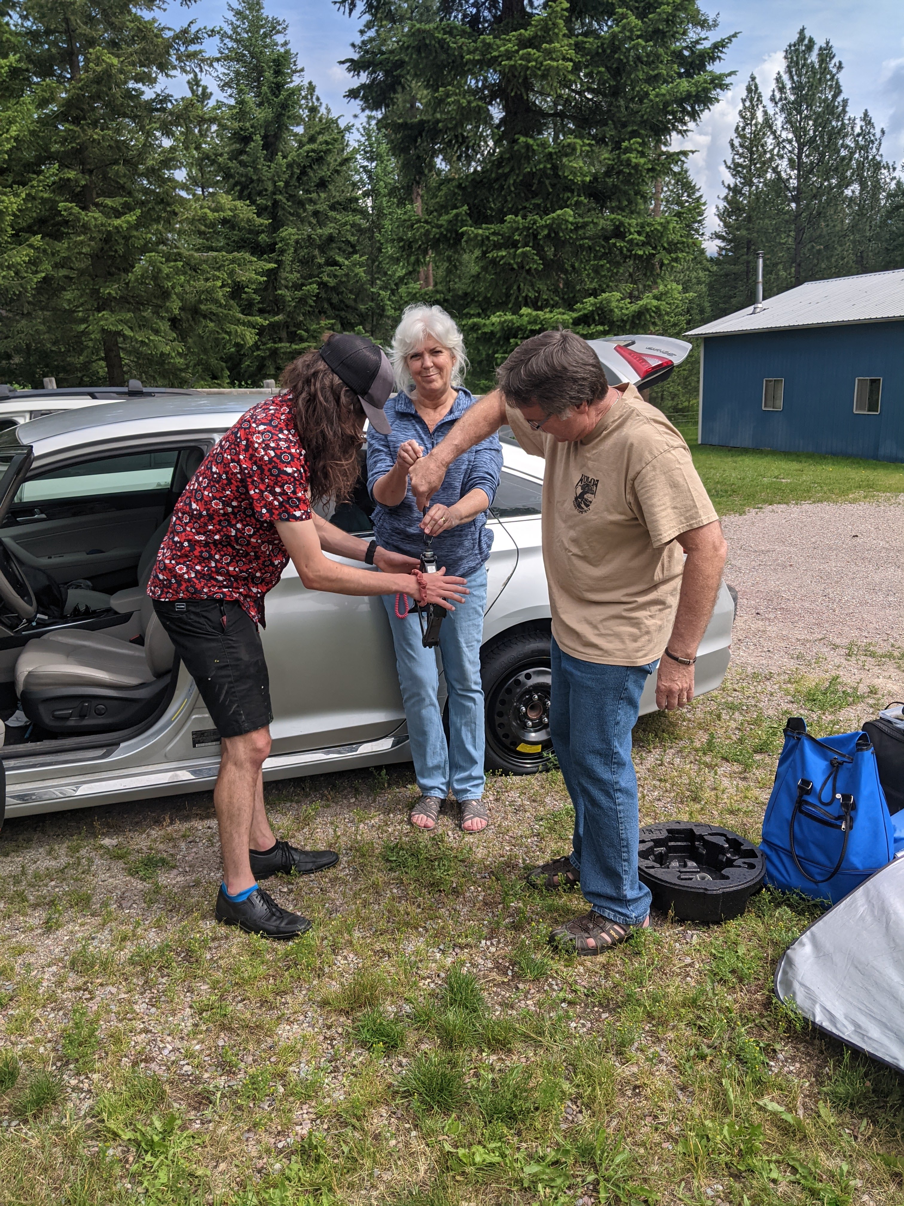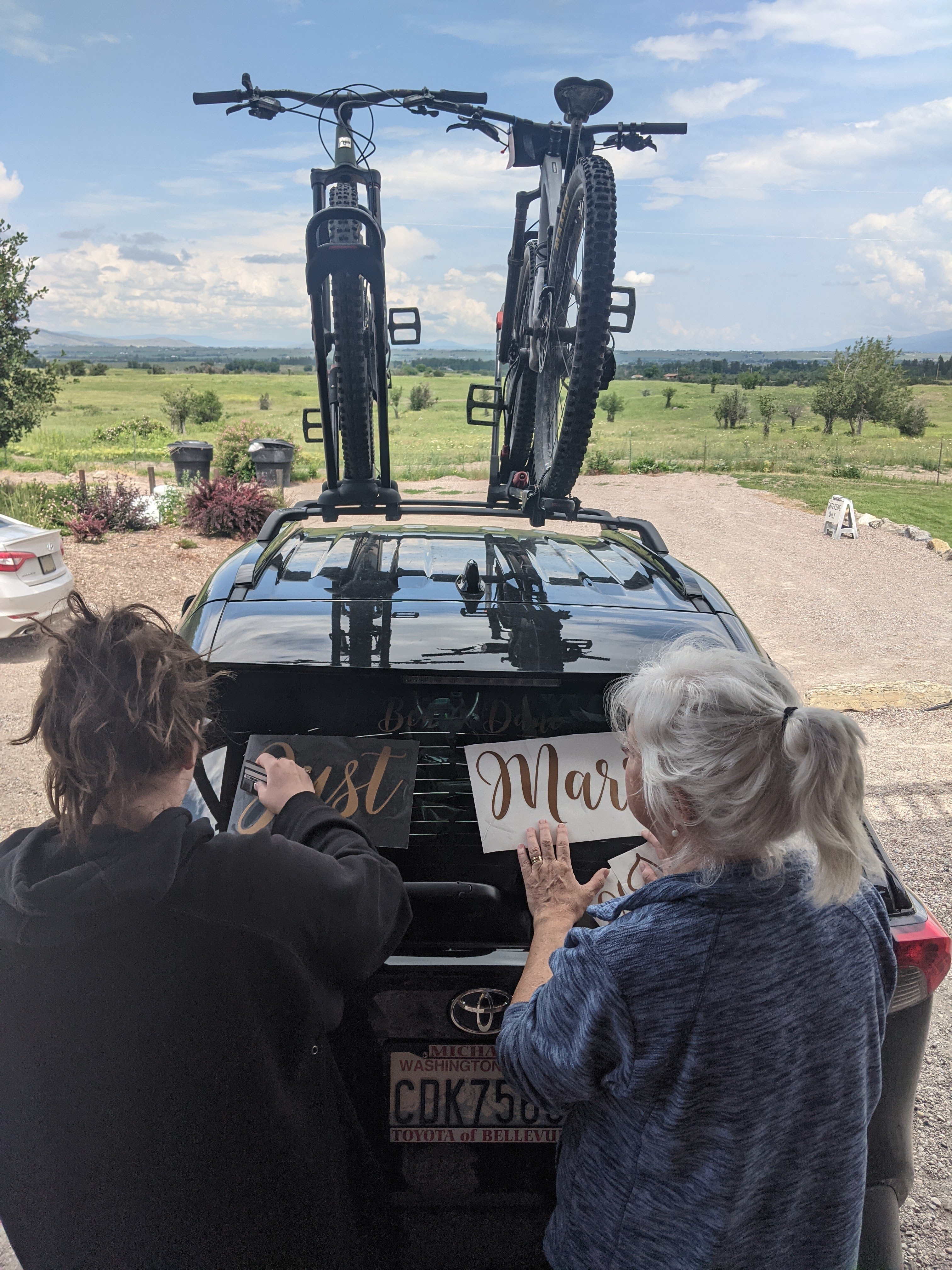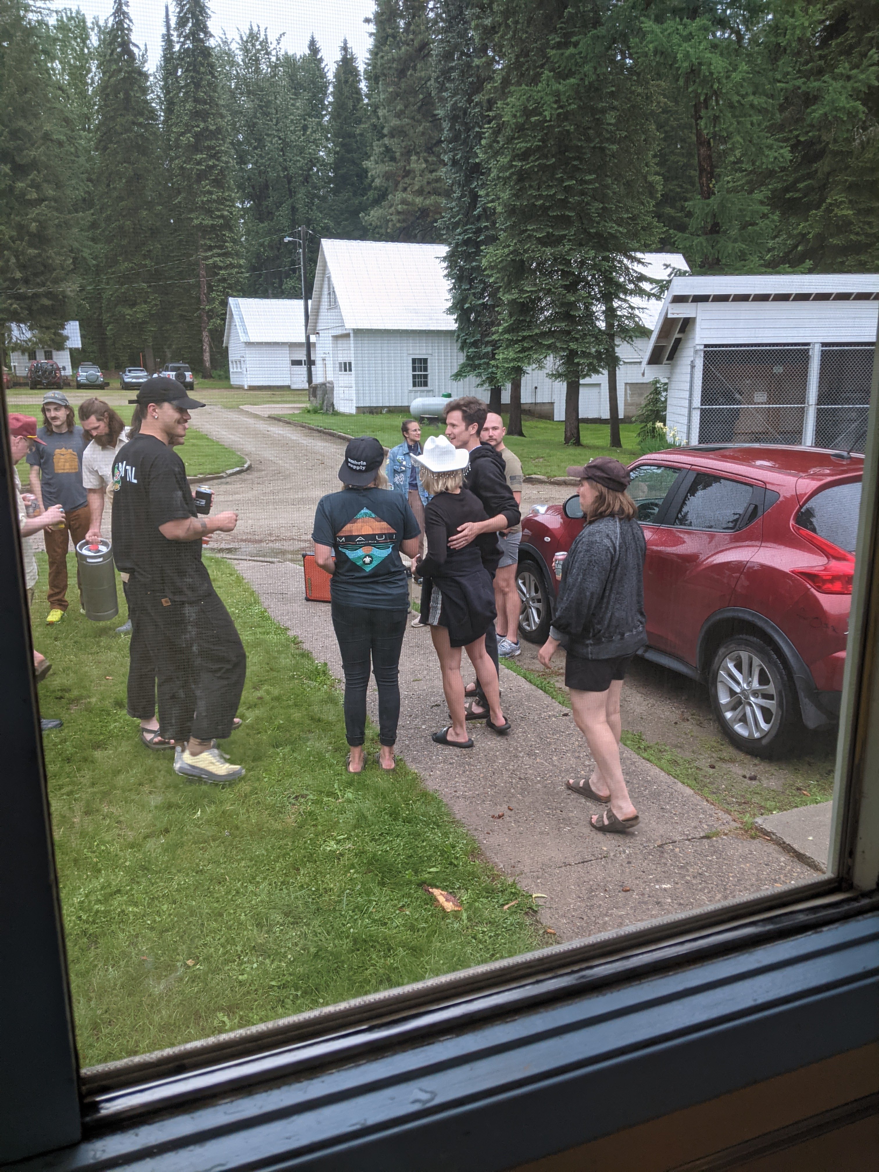 My lovely sister Alyssa, the other bridesmaid, picked us up and we were off choring. Liam and his brother, who was recruited to DJ the wedding, had suits shuttled by other chaotic means and middlemans to good family friends in Missoula, MT. These are the same kind folks who end up bringing us a great used engine to the small fishing village in Canada, Ucluelet for our quick n dirty engine repower on anchor. Janet and Amos welcomed us in for the handoff and a chat before we drove northwest to Savenac. Our oldest sister Dani and her fiance were still up late chatting with recently arrived friends and family by the time we got in.