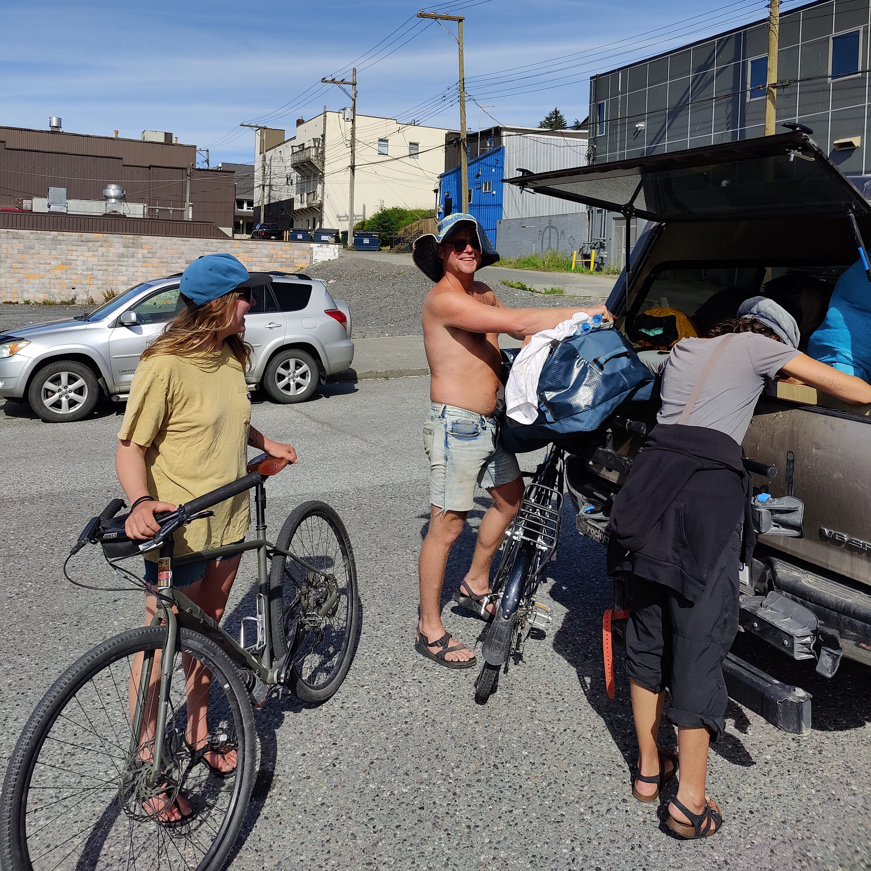 A quick tour and introductions later we explain the situation of Prince Rupert being a chore type stop and thus the logistics commence. Trevor having Zoe’s car makes things immensly helpful. We set off in search of laundry, Trevor and I driving while Heather and Zoe bike into town. We get lead astray and end up at a strangers house before finding ‘Rinse Rupert laundry mat’ where we all 4 of us find out it is essentially closed for the day. Being it’s now about 5:30 we decide it’s pub time instead of logistics time and set off for a dockside pub for poutine and Ceasers to wash down the sunset with.