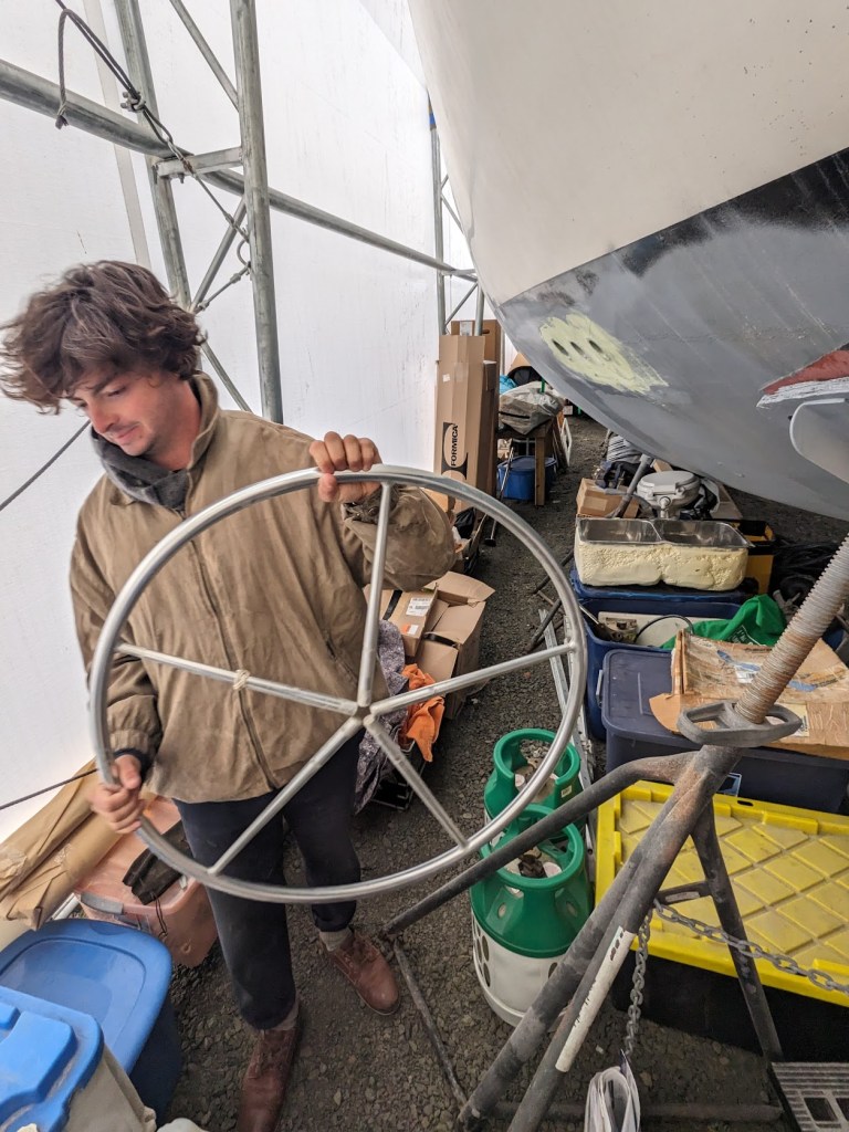 So we wake up when we wake up which is around 9. Coffee and scanning for goods on FB marketplace or project research accompanies breakfast. We get to the boat by 10 or 11. Gawk at the boat for a bit and check out the fairing on the hull. Or find something new to install in one of the boxes under the boat. Chat with fellow boaters and the yard workers throughout the day. Ping pong between jobs, perhaps finishing one to completion every say 6 days. Eat the half sandwich that we packed. Realize it’s dark because we are cold, or as its warming up lately, because someone mistakenly checks their watch. Go home around 9 or 10. Sometimes 8. First person showering usually makes dinner. Chat about projects. Put on an audio book (recently Salty by Loni Calloway which is just superb) and sleep hard until our bodies let us wake up.
