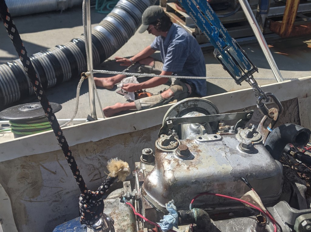 Day 7 is a mystery but the 8th was a most important day. A circus of logistical bedlam unraveled all day. Highlights follow. PAYMENT FOR NEW ENGINE Many phone calls leads to 1 hour phone call for a wire transfer. The hope was to get a receipt before Janet and Amos arrive in Sidney. That