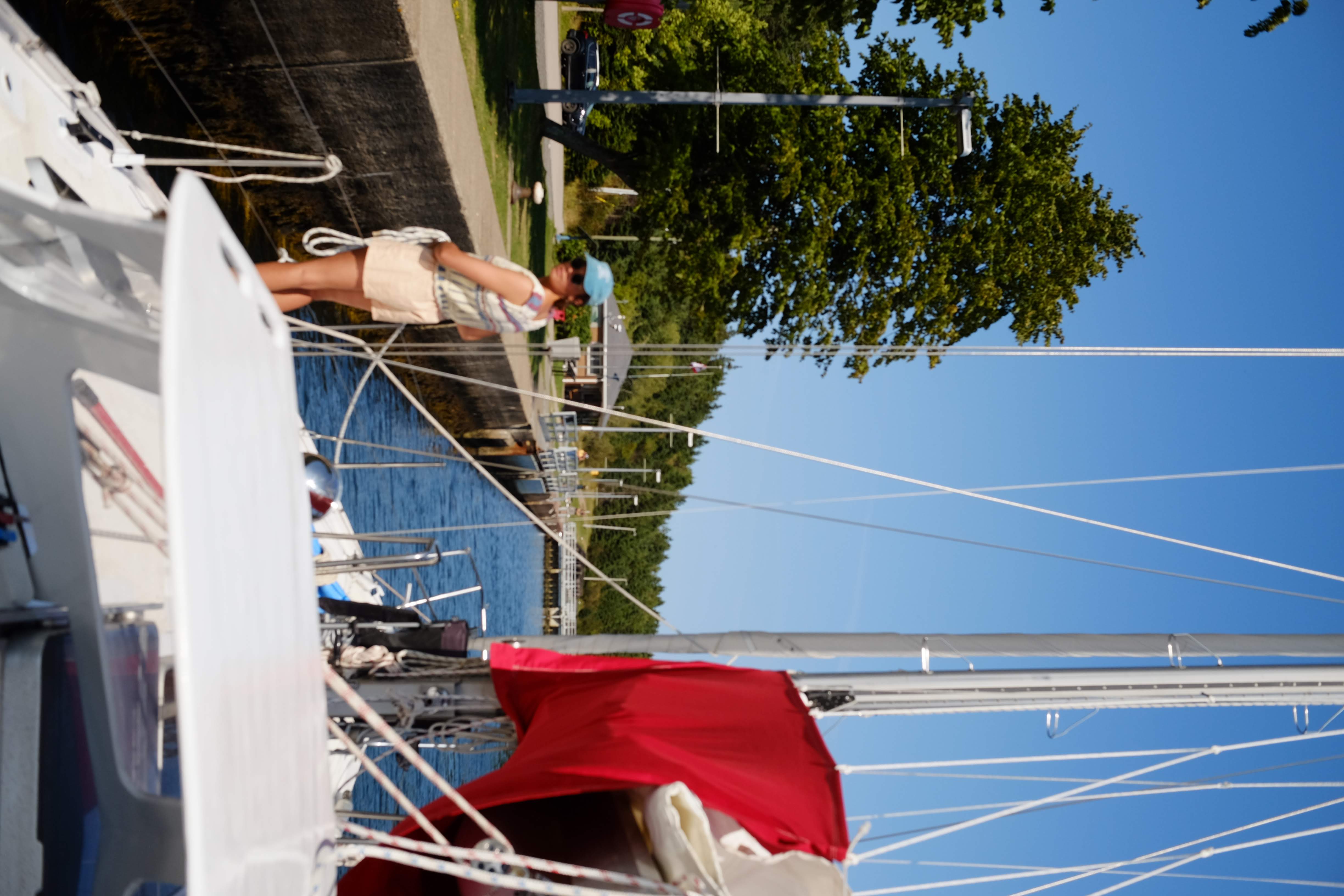 With a brisk fresh breeze we set off in the morning heading north. The wind seems to be making it such that Marble Mountain, the only thing in the lake we had heard about beforehand, was always upwind so we thought we’d just go around the lake the other way hitting the hiking trial on the way back down. Maskall’s Harbour was suggested by both the lock masters and friendly kayak man, also is sort of legendary in the cruising world as the CCA was formed there back in the day. This meant heading through Iona where there is a drawbridge to go through. The sail up the lake was nice, with no swell Karma just flies along under full whites. We sail almost all the way up to the bridge but as it doesn’t open to wide we drop the sails and motor on through. Once on the other side the sails are up again for the final 4 miles to Maskall’s.