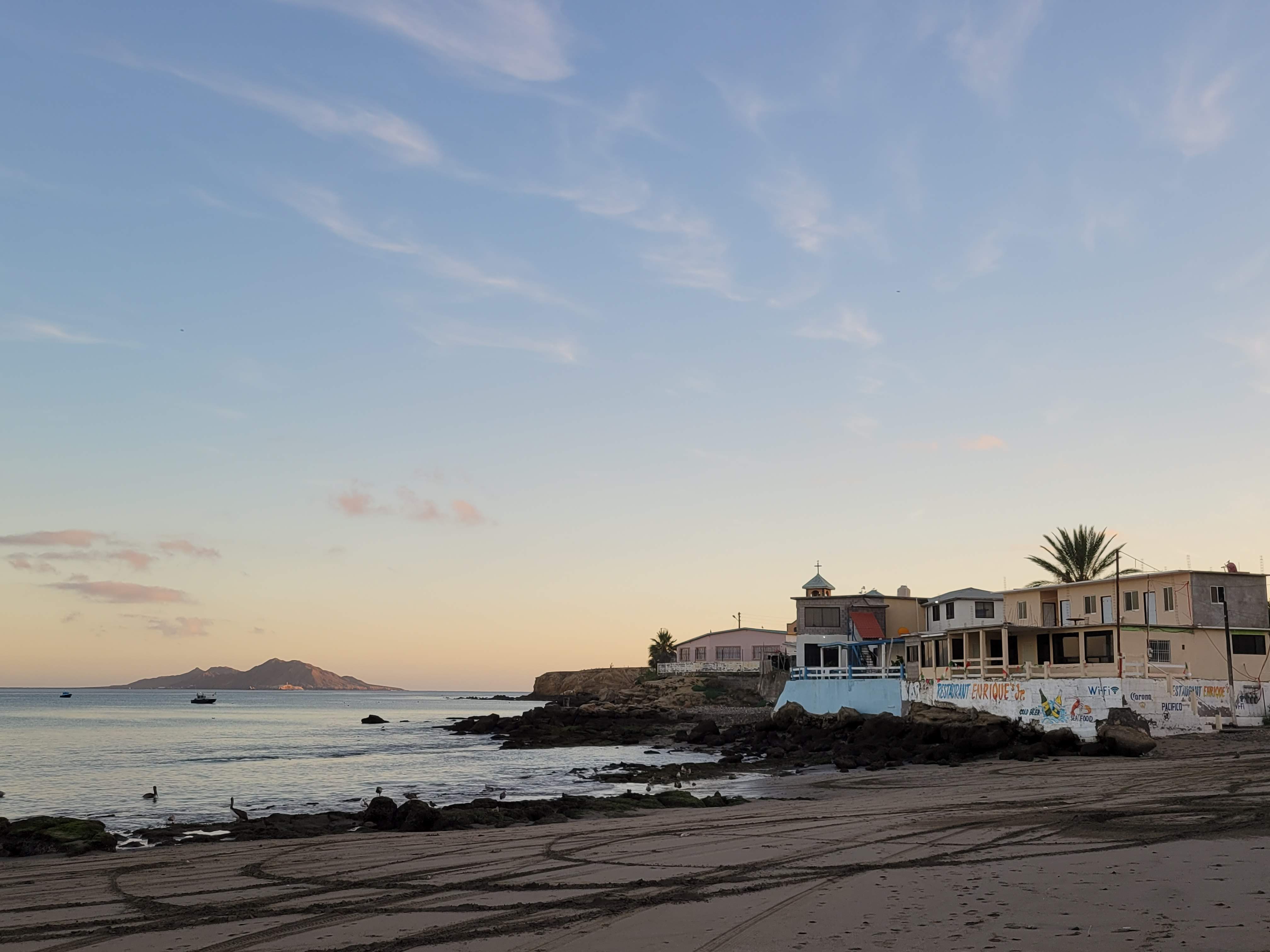 Baja’s west coats is mainly big dramatic desert mountains, growing larger the further south one goes, interspersed with the occasional fishing village though these are very much part of the desert themselves. Roads of sand, not even compacted dirt but straight up, how does a car not just got bogged in this sand. Dust, dust everywhere but not dirt, its fine sand dust. Once you reach the edge of one of these towns, which is rather easy, usually but a few blocks from where you started, its just desert. They’re often on their own water supply with a desalination plant somewhere in town. Power often comes partially from a grid of sorts which is on a few hours a day and partially from one’s own solar setups. No ATMs or box stores, its just the small abarrotes shops and cash only. Aside from the early morning to about noon where the fisherman take off and then return in their pangas, not much is happening, but I mean that in a good sense.