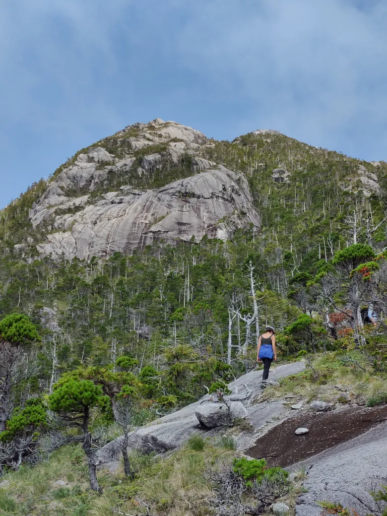 It started off much like a game trail, with a semi compacted trail with a few plastic strings tied to trees but this quickly ended and we were winging it as far as where we were going. Once we made a good distance over the rolling rock hills and past the lagoons we started to climb, or bushwhack that is, up with the goal of reaching one of the peaks.