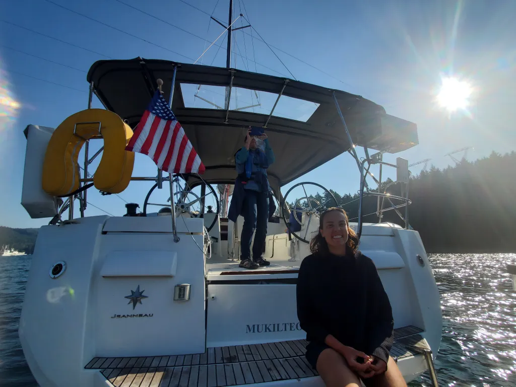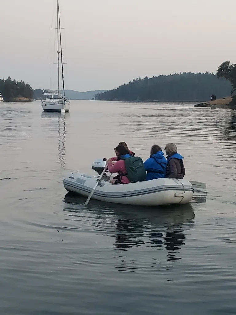 and one happening to have my aunt on board. During mid to late August we were literally bobbing about wondering when we were going to be able to get our mast back. It was already 2 or so weeks past the time we originally expected when we had it unstepped, and the sailing season was fast coming to a close. All of a sudden, in one of the 32,000 family group chats going around, Linda announces she is going to be the 5th member of an all women crew on a charter boat heading from Bellingham to the Gulf Islands and back right around the time our plan was to head straight to Canada.