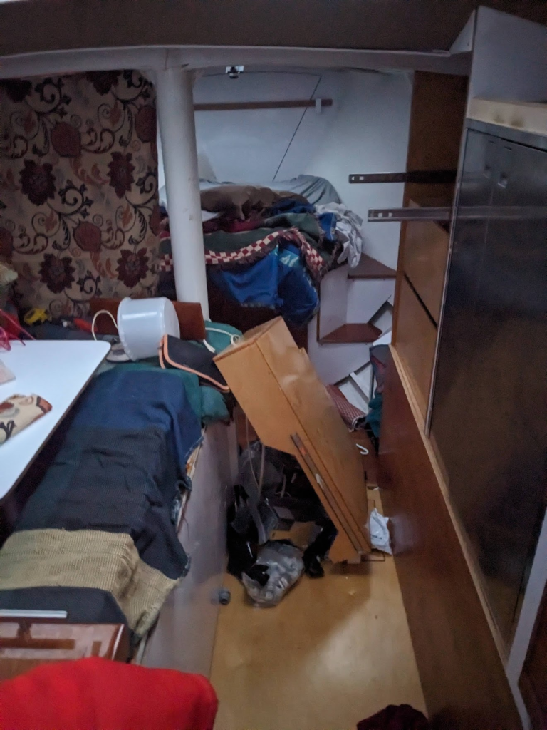 Drawer number two took a dive this trip, flinging screw drivers and scissors not too far from sleeping Liam’s head