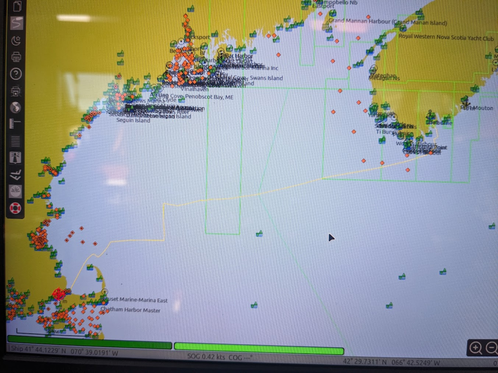 The Gulf of Maine is the body of water south of the Bay of Fundy, sandwiched between Nova Scotia and Cape Cod in MA. If you don’t know of the Fundy, you should know that the tides are quite large. This can create exciting waves near the entrance and the tip of the Scotia; if the wind is opposing the current, all the more exciting. The game to play regarding passage planning for western Atlantic this time of year is one of threading the needle between hurricane season & winter storms. The likelihood of hurricanes directly hitting the Scotia is always low but obviously once the Atlantic season as whole “ends” come November it’s even less. BUT the chance of a gnarly winter storm increases of course as winter progresses. Being out of season seems to be our modus operandum so this game is a welcome one. Close to the Scotia, we infrequently saw speeds over 10 while surfing the waves but 12 knots while surfing became the norm not long after. The boat shudders at this speed. Probably it’s the rotating propeller churning up water on the hull. I clocked 12.4 at some point and another time a huge wave put maybe 4 inches of water into the cockpit.