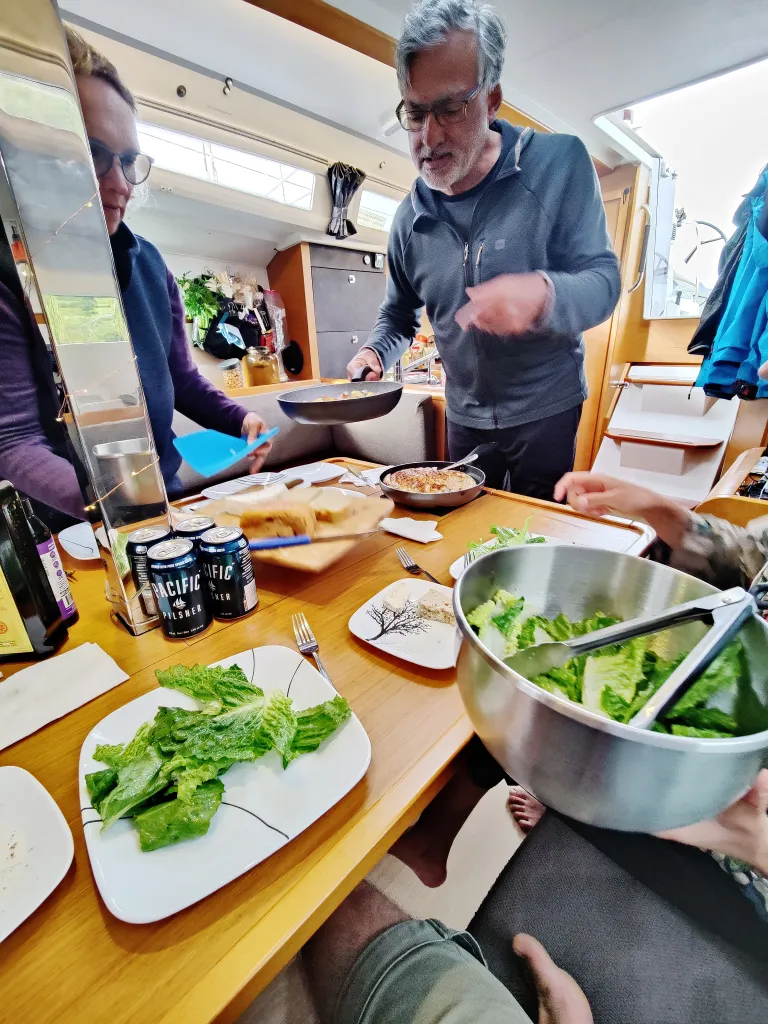 We showed up to a cockpit chartutertie board of fresh baked sourdough, Turkish olives, cheeses, and of course, the lovely Linda who we now met for the first time officially. Linda, a scientist of sorts in the fermentation/yeast department, meticously makes probably the best and most offical sourdough onboard we’ve ever had, and makes an array of kombuchas onboard as well! After just a bit of introductions we were all chatting like we were long lost friends and it was clear this was going to be a pairing for the books.