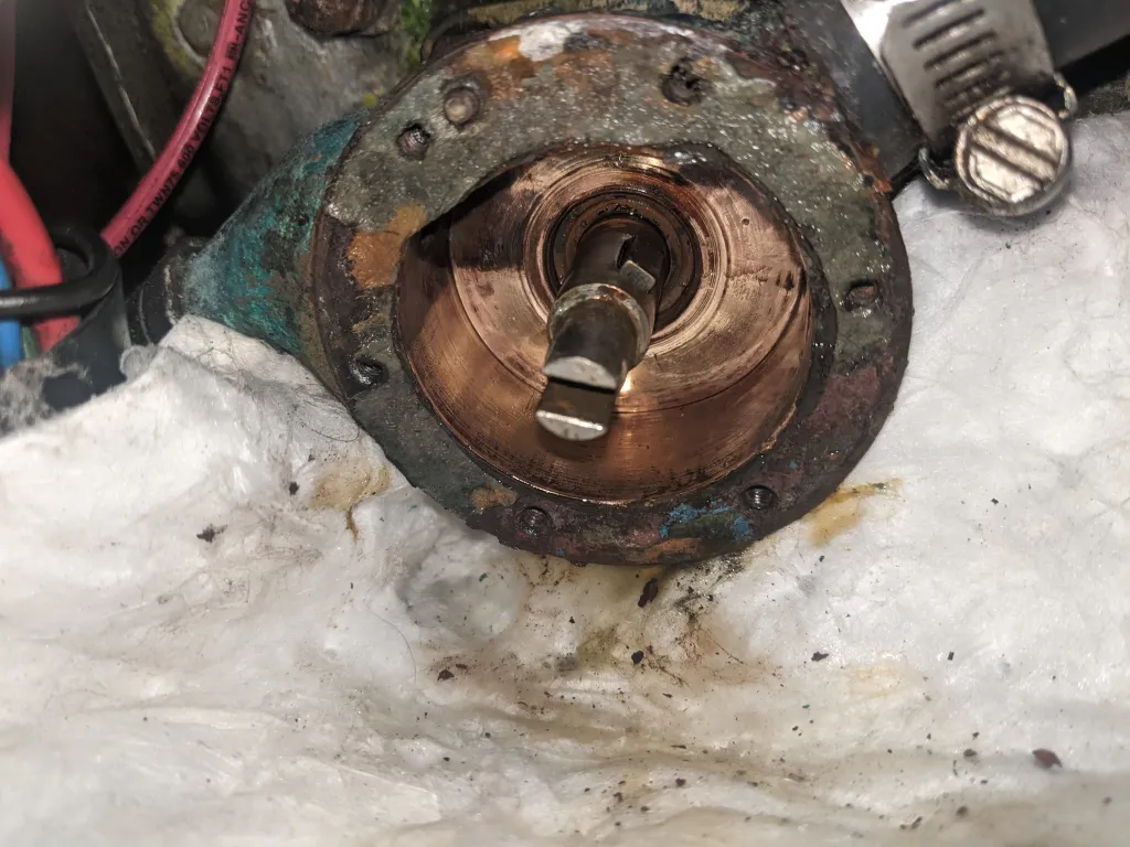 ***We probably would have tried this if we had thought of it then: If you cannot get a replacement pump, simply re plumb your water pump lines through a scavenged pump. We would probably use one of our bilge pumps; we even have an impeller driven pump which would do nicely. The 2QM engine we had during this issue, had a gear driven water pump which would make this trickier than a belt driven one since the oil in the engine can potentially escape the unused pump housing. Either through the weeping hole or the water input and output. I think it would be easy enough to get creative with sealing the oil in if that actually became an issue. If you have a belt driven water pump that malfunctions, even easier. So long as the wheel isn’t seized. If it was you could just change or ditch the belt but still use the neat pump swap.