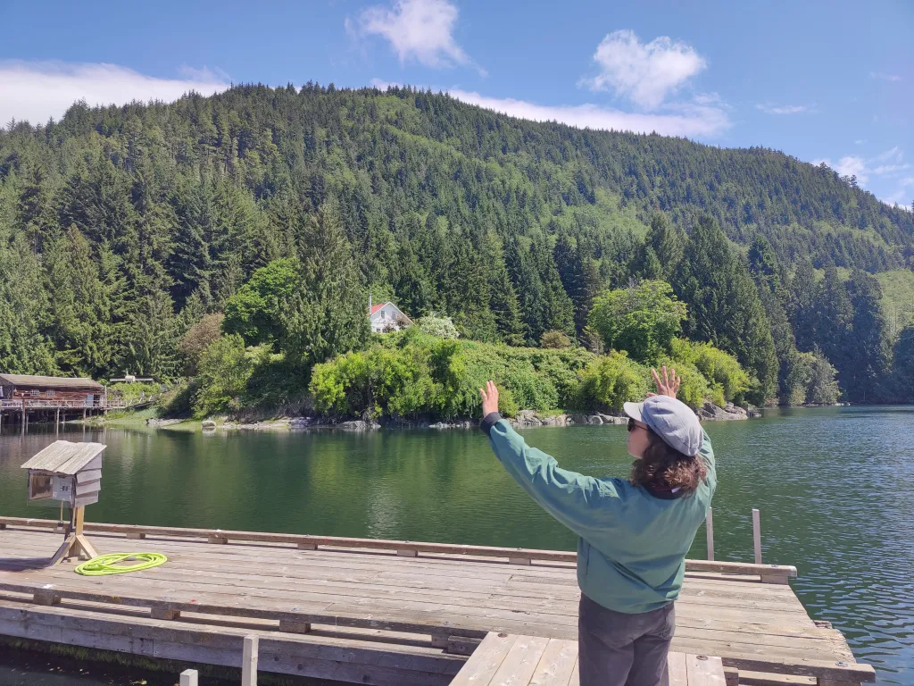 Karma was set. It was Saturday afternoon and we felt like we had a world of time to get to Port McNeill by Monday morning for the rental car. We enjoyed the Happy Hour with some cold IPAs from Harmony Bay, prawns from Dan and Kelly, and notably a pumpkin cake. Liam made sour dough balls for the pot luck. We had a relaxing night sharing boating stories. Enjoying the views at Lagoon Cove after an easy docking from the hip tie with Kelly and Dan, owners of Lagoon Cove, catching our lines