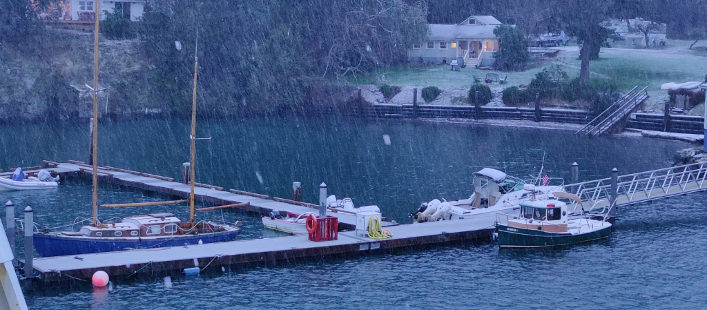 been in Friday Harbor, San Juan Island, San Juan Islands (confusing I know) for a while. Being that we aren’t actually sailing anywhere, the boat hasn’t moved once since October, the mentality has definitely shifted slightly and it is interesting to be mid-experience of a place we discovered cruising as now a place we just live at. Granted our apartment is more effected by wind than others who live on foundations, really we are just living in town here being on the dock which connects to Spring St. Seal on H Dock at the Port of Friday Harbor