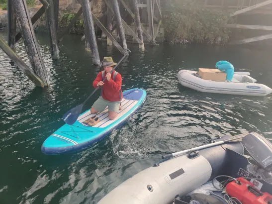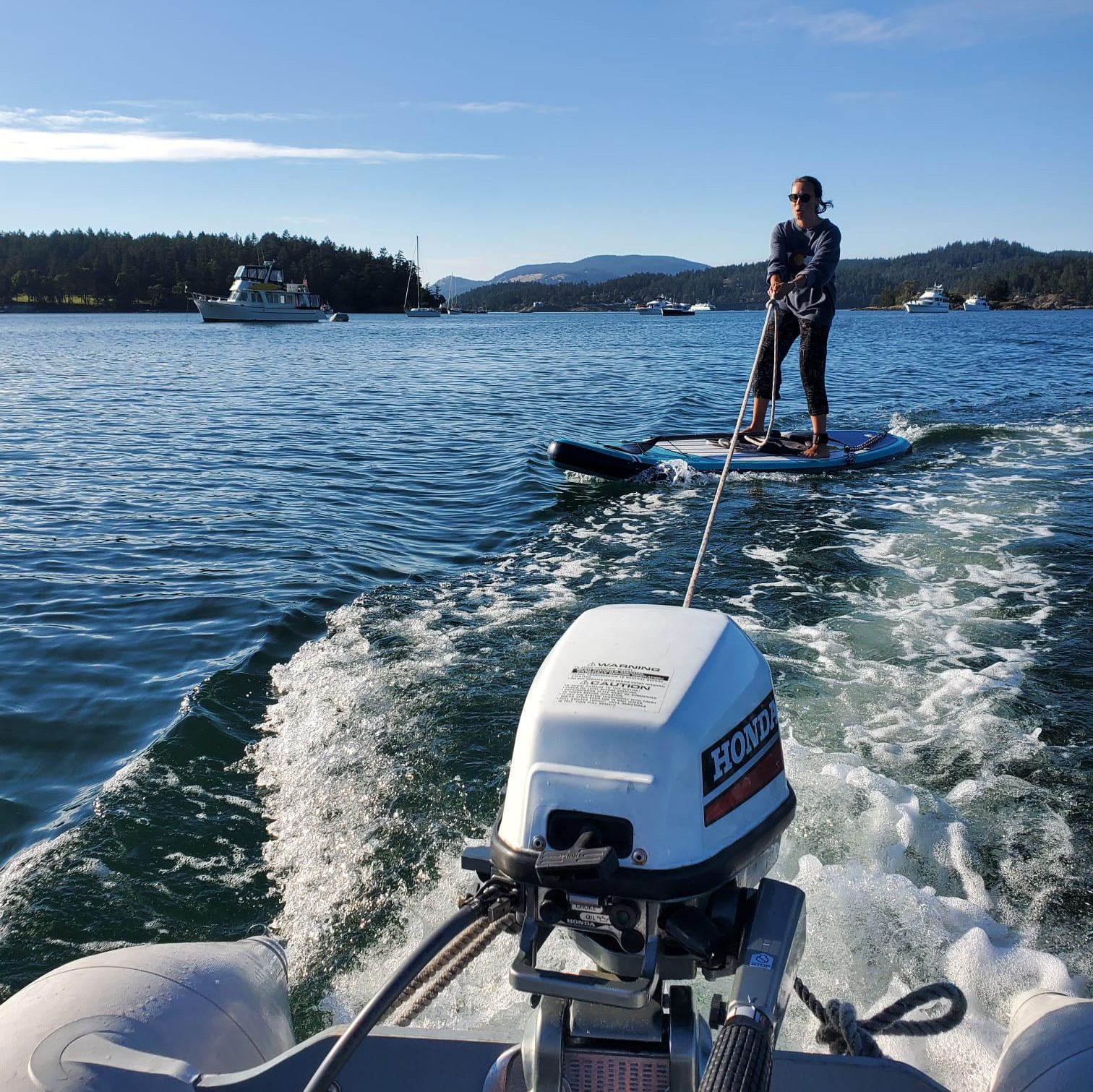 I did not make it to work. I did start using the trusty paddleboard again (and procrastinate on fixing the oarlock…to this day). We eventually found and purchased another outboard thanks to the recognition of utility and kind sponsorship of Kate and Grant, Liam’s folks. We love our 2 stroke Yamaha and and we will write more about the outboards in detail…including the hotly discussed 2 stroke versus 4.