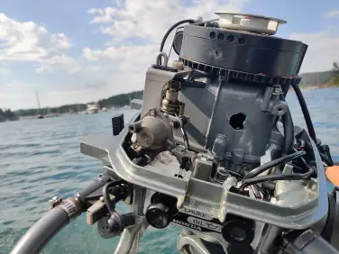 Rowing was pretty efficient until the oar lock broke. Conveniently timed though, as we were thinking about getting an outboard. Wake boarding, trekking to far away places, and going fast were the enjoyed perks of one 4stroke, single cylinder Honda 5hp. Planing is possible if you are alone; I’ve reached up 11 knots. No need to fix that oar lock now. Outboard chronicles deserve a major focus later in posts. For this outboard’s story…long story short after my ferry to work was cancelled/delayed/cancelled, I tried to dink over to Shaw. I expected about 30 mins solo planing a big 2 nauti miles. After making it most of the way with lightening and rain as my companions, here is how that first outboard on the new dink ended: Turns out a single cylinder is not enough to handle the compression …common issue with this model