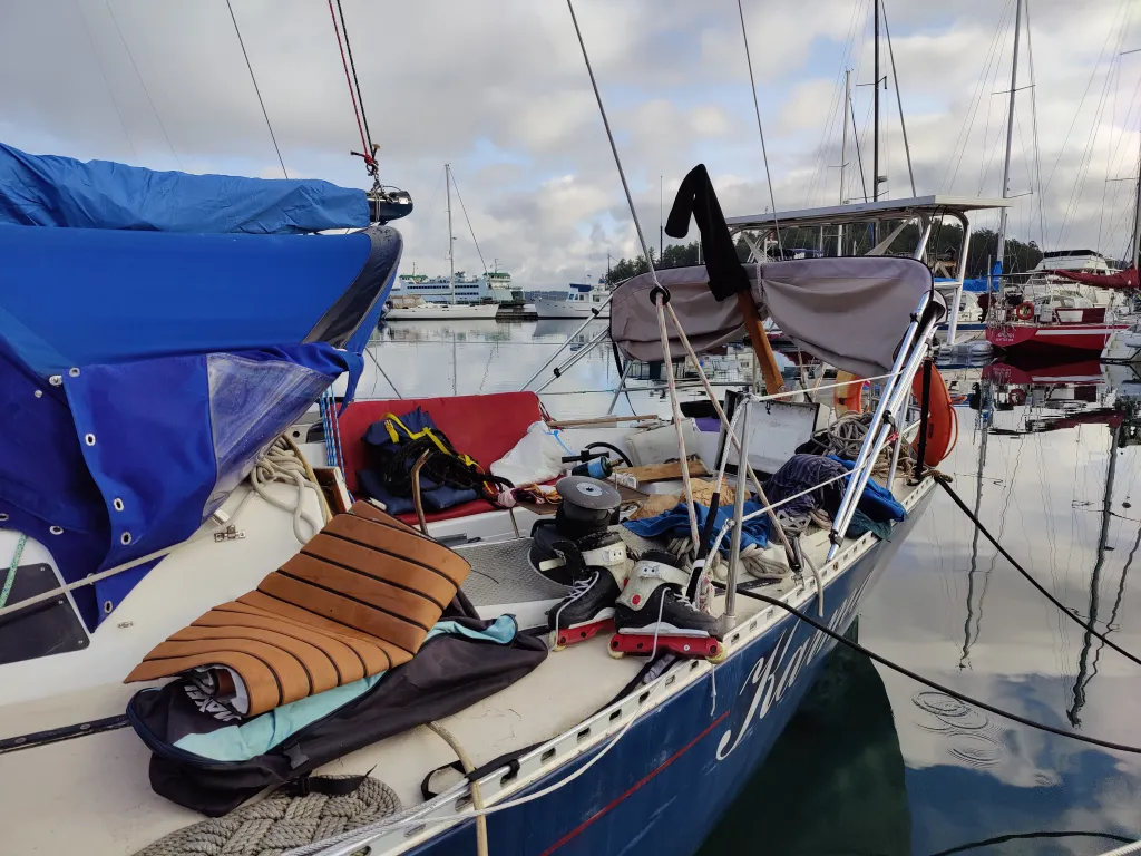 Christmas came and went, I (Liam) was away from Karma for 3 weeks in California and Heather was posted up on Shaw Island then down in Seattle for the festivities. Of course during this time was when Friday Harbor experienced its one week of abnormally cold weather and we had 2 or so feet of snow aboard, lowering our waterline and slipping up the decks.