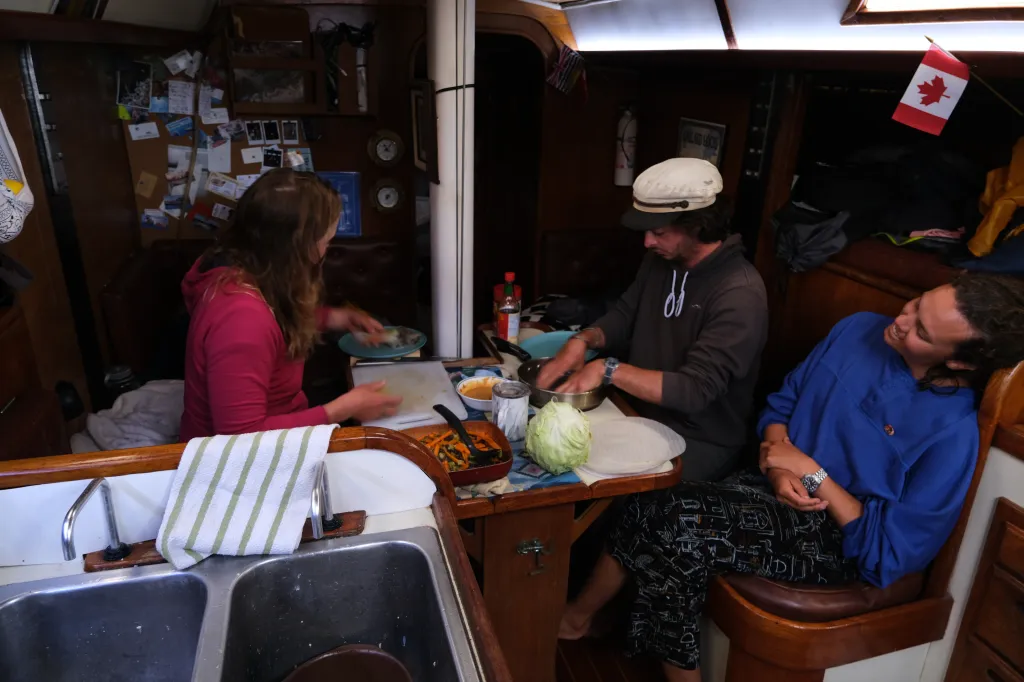 A huge bay but protected from the swell, we had one of those sunsets where the calm water mimics the sky and with a few gillnetting boats out, it was sort of the perfect BC Coast sunset, a perfect introduction into the anchored life for Trevor and a nice reprieve from the chaos that follows us always when we pull Karma up to a dock in a town. Being the first night on anchor, we all 4 had to watch Captain Ron, where Trevor became the semi official ‘swab’ aboard there after, then hit the hay.