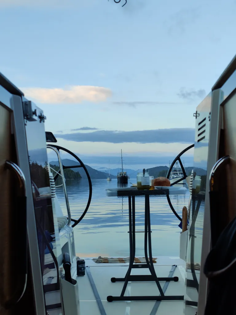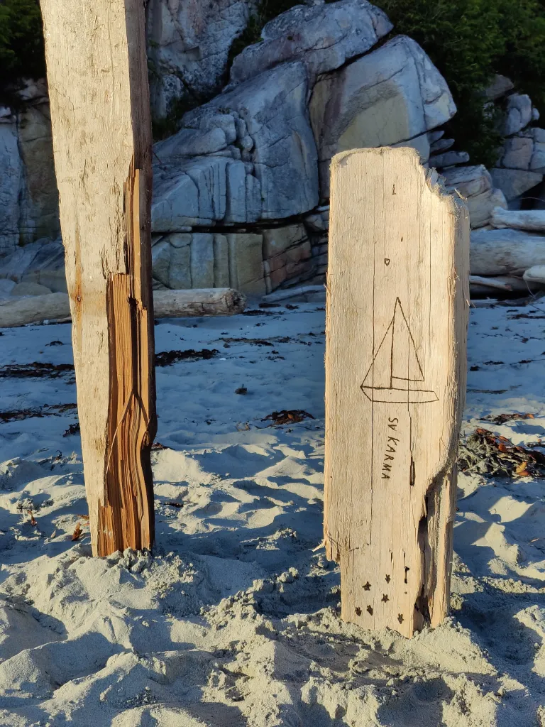 We parted ways the following morning to buddy boat with SV Ashram further north in a cove suggested by Qualia. We said our goodbyes, collected the frozen fish graciously gifted to us, and glided off to catch up with Ashram’s ragtag crew. Always sad to say goodbye, but hopefully we will catch them on the West Coast as we and they make our ways down later in the season.