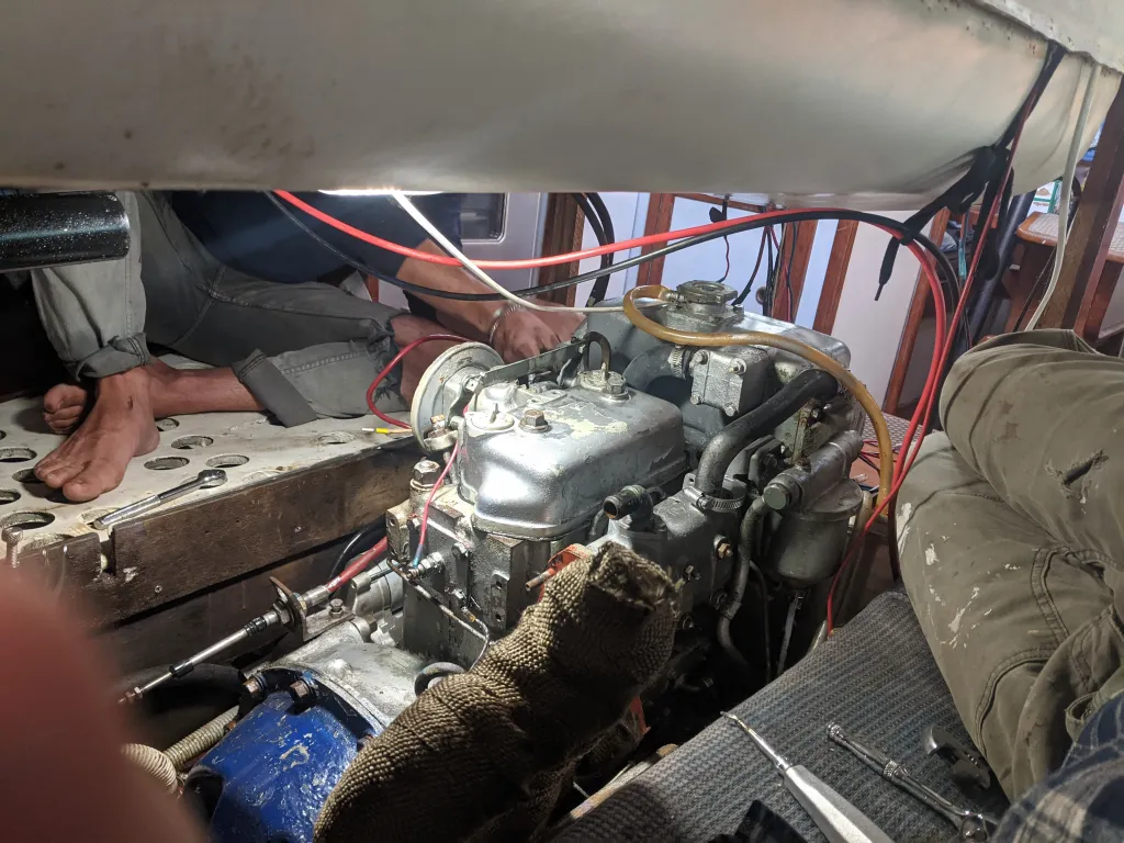 We started dismantling our bb engine on 8/24/23 and still plan to cruise down the West Coast within a month! You know, being veterans at this now, starting day two (2) of this whole re power dealio, we really don’t see why folks make such a big deal of it…………