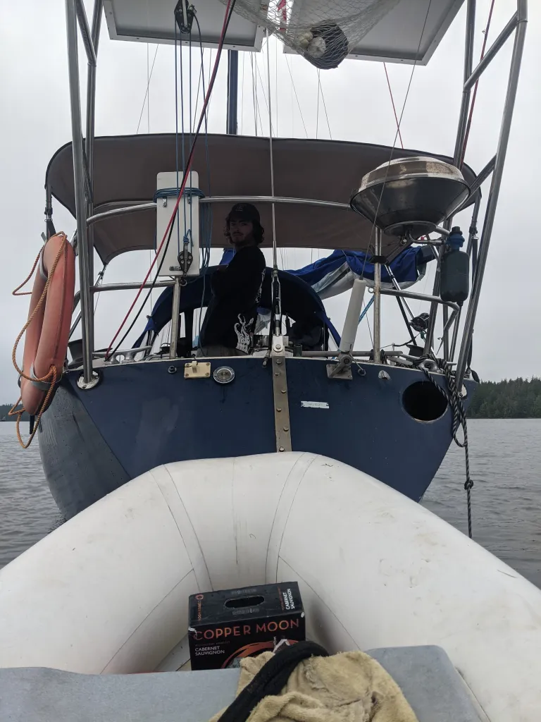 Upon hearing that “there seem to be more sailboats in Ucluelet,” we finally went south. We anchored Karma in a place compared to the busiest street in downtown Chicago by a new pal Steve on Wendy and their lovely Valiant 40. Few days later, we tried starting the engine one last time to move locations, we confirmed we needed to repower since it would not even turn over. Our first dinghy assisted anchoring took place with some difficulty.