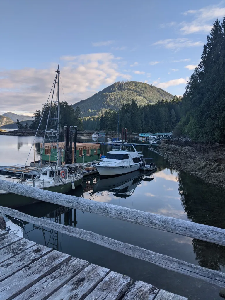 Had we publicly claimed to be sailors? The inside passage is full of fast flowing water through narrow channels. Maybe we could deploy the dink and use the 1 gallon of dinghy fuel to nudge Karma in the right direction if things get hectic in the currents. The 1 gallon. Getting back to the highway, the Johnstone Strait, would be 8+ nmiles such an area. Then we get to the Strait and head West. Little to no wind in the morning on the ebb tide. Then 1-2 knots pushing us east on the flood tide. Then choppy waves and probably high winds on the nose on the ebb. Then headwinds and opposing currents at night on the flood. Then nighttime. In a draught restricted channel frequented by massive cruise ships and massive tugs pulling logs or barges. Maybe we go for narrow back channels instead of the Strait, try to time the currents well. Drop anchor under sail if we can’t. Never done that before. After either of those, to try to get into the planned affordable marina in Alert Bay! They assured us space is available but we, like most, would be rafted to other boats. Maybe that docking would be in daylight. We are sailors after all so we could just sail in circles until daylight. Maybe this tackful sail would go overnight, never done that before! The many “ifs” had us so so so stressed with this plan.
