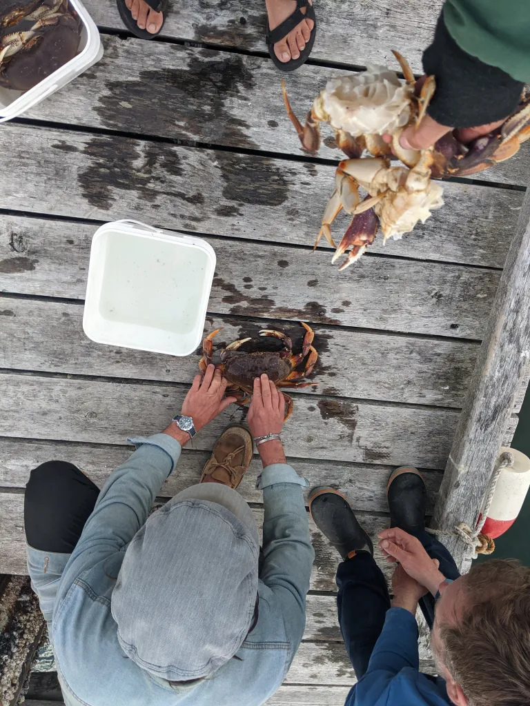 Liam and I watched sunset at the end of the dock. A man called Mike brought over freshly caught crab, asked if we wanted some. He gave us two and taught us how. Liam succeeded in the method…eventually. Mike worked on prawning boats as a regulator, checking fishing practices and doing inventory of the prawns size and sex to inform the end of the season. Usually they last 35-45 days. Prawns change sex throughout their lives so there are multiple sex classifications. When there are more females in the populations caught, they end the season sooner than later. They were nearing day 30. We would see and catch up with Mike post season as he was headed out to go surf just when we returned to Lagoon Cove.